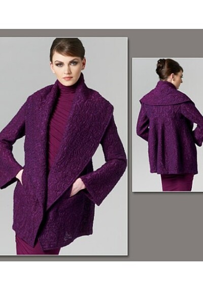 Very loose-fitting jacket has side front pockets and flat felled seams. No provisions made for above waist adjustment.