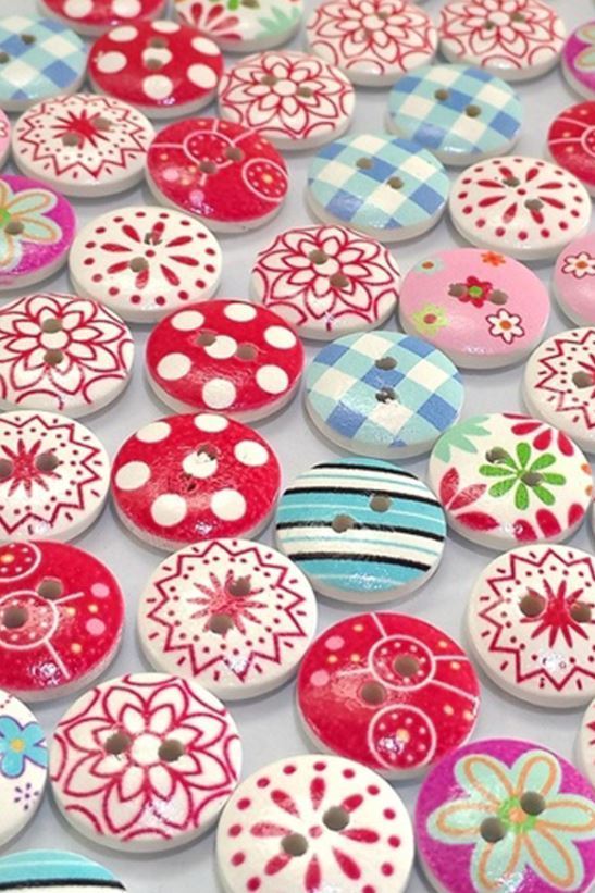 1.5cm random mixed wooden buttons. Sold in packs of six.