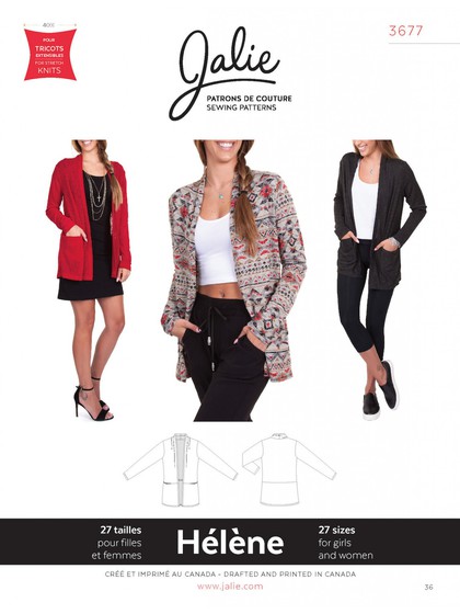 Open front cardigan with high back neck that creates subtle draping, super-easy pocket, waist seam for color blocking and slightly flowy lower back to give it more movement. A quick sew thanks to the ingenious construction!