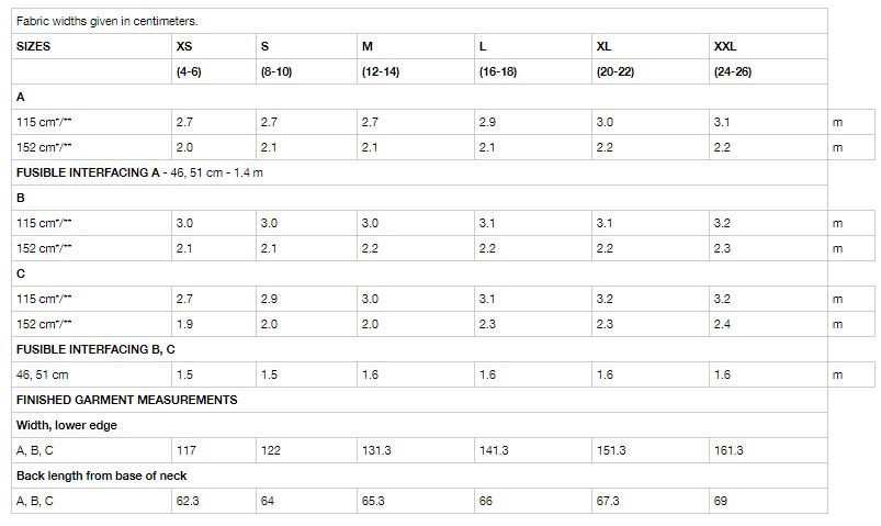 NOTIONS: A, B, C: Two Snaps. A: Two 11/8" (2.8 cm) Buttons. B, C: Four 11/8" (2.8 cm) Buttons.