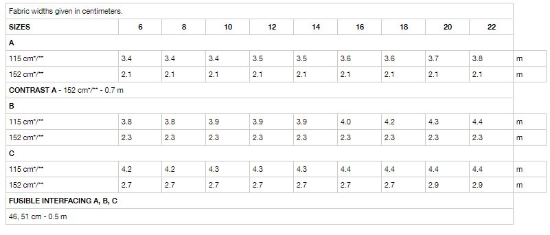 Note: Fabric requirement allows for nap, one-way design or shading. Extra fabric may be needed to match design or for shrinkage.