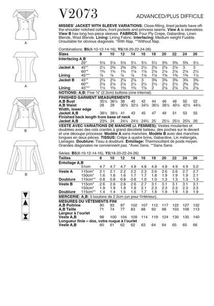 Vogue Patterns Misses' Jacket with Sleeve Variations