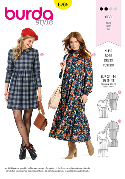 Young and fun dresses in different styles: Check fabric lends a sporty touch to the charming mini dress with a Peter Pan collar. In contrast, the long floral dress with a tiered skirt and shirring at the collar and cuffs is unabashedly romantic! Short or Midi Length with Tiered Skirt