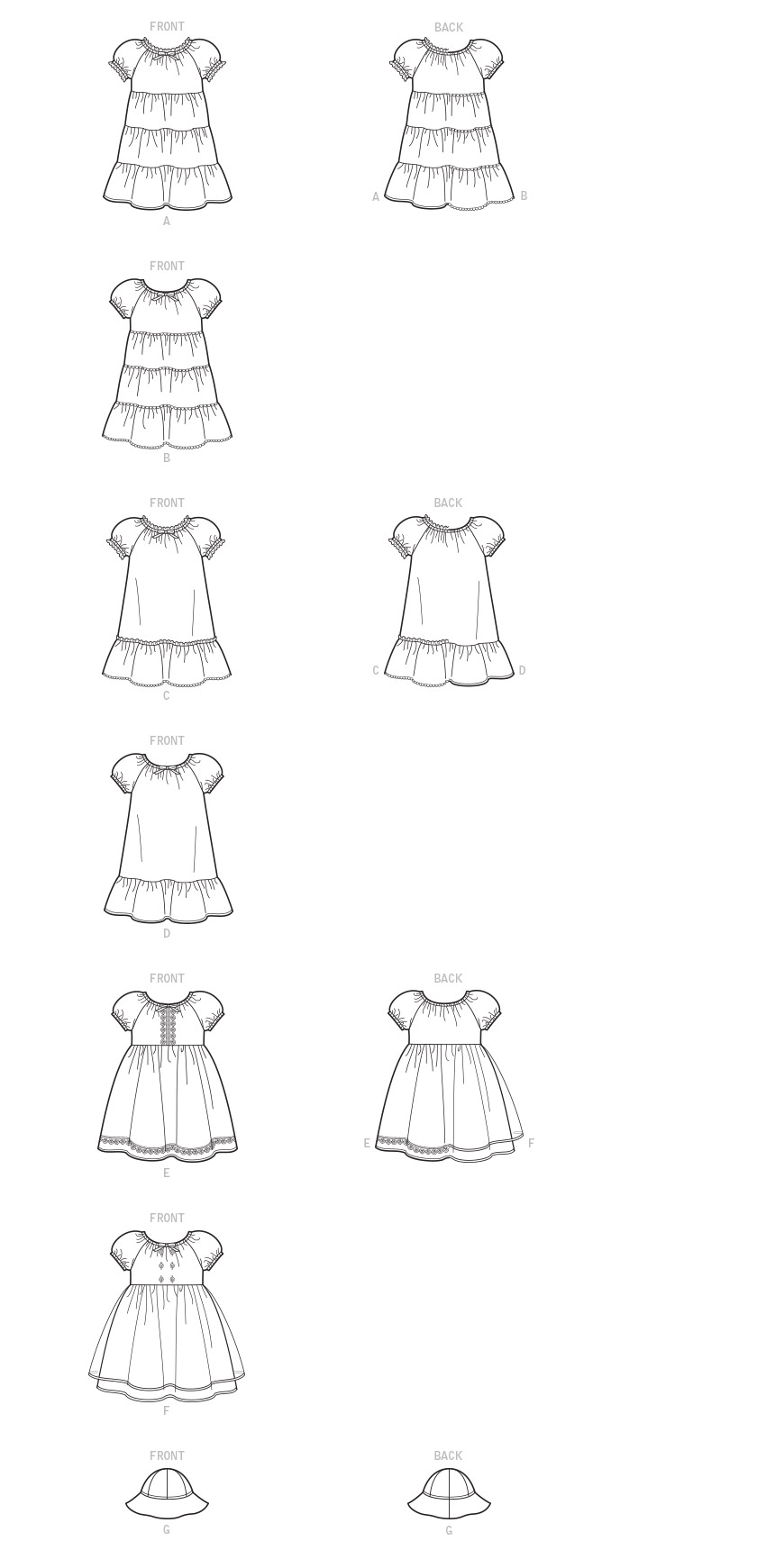 Your toddler will love these six dresses made easy, plus a hat in three sizes: S (19"), M (20"), and L (21"). Ruffles, trims, overlays and bows make these as fun to make as they are fun to wear.