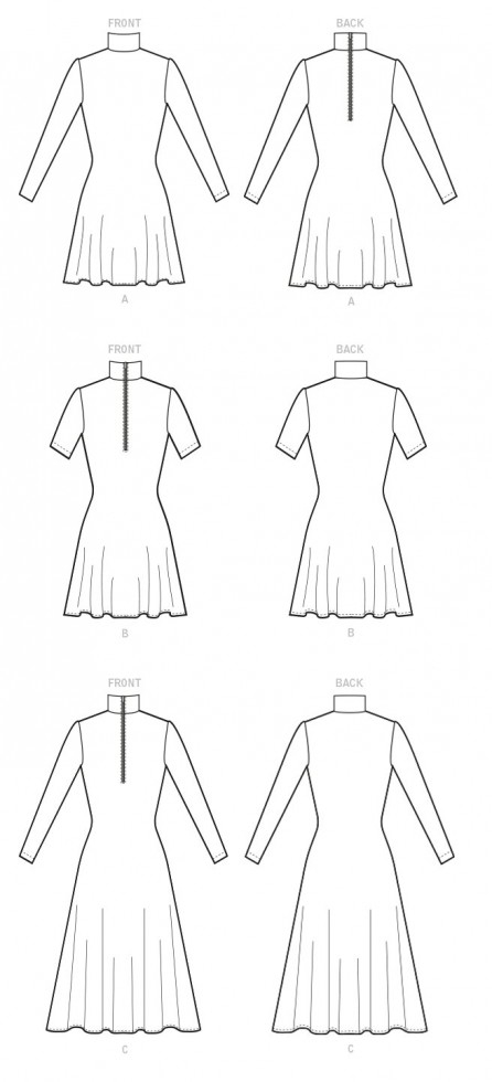 Fitted zip-up turtleneck dress with sleeve & length variations