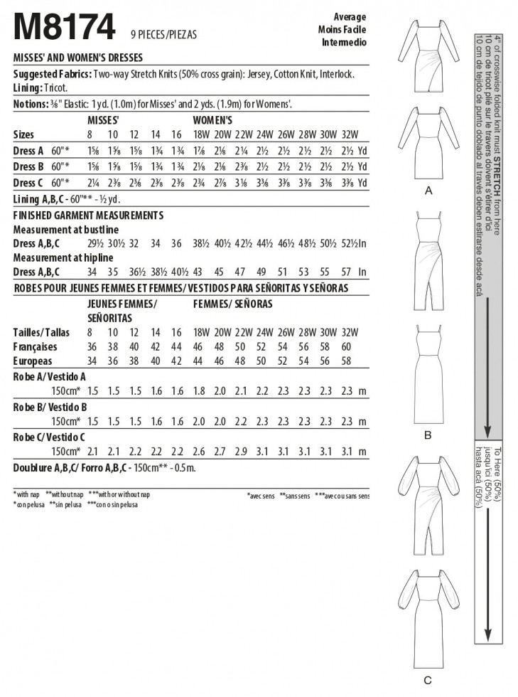 Two-way Stretch Knits (50% cross grain): Jersey, Cotton Knit, Interlock. Lining: Tricot.