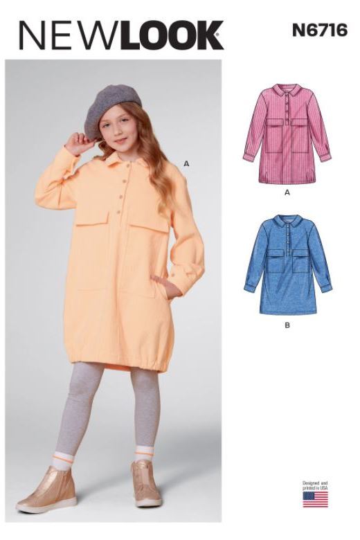 Shacket dresses have long sleeves with button cuffs, button front placket, back yoke with pleat, pocket variations and option for elastic gathers at hem.