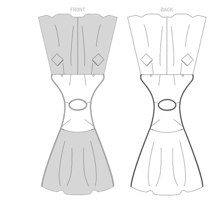 This Vintage 1953 Wrap Dress (close fitting through bust) has darted front and back bodice, waist and shoulder seams. Back wraps around under the front closing with a hook and eye and has concealed patch pockets. Front has button closing at the waist. View A has contrast skirt and binding. View B has purchased bias tape. Separate pattern pieces are included for cup sizes A, B, C, D.