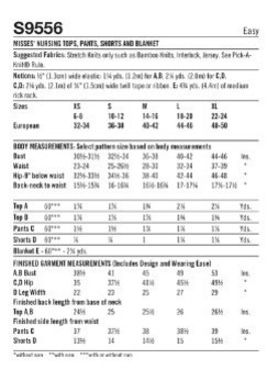 Misses' Nursing Tops, Pants, Shorts and Blanket