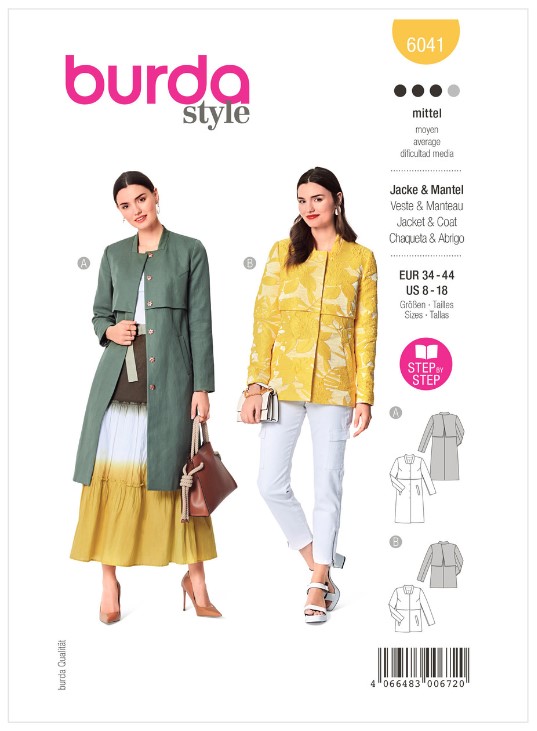 Here we have a classic cut with a stand collar ' it would look great made up in flannel. Choose an unusual fabric to go trendy as we did for jacket view B. However you go, this will be a piece to wear for years to come.