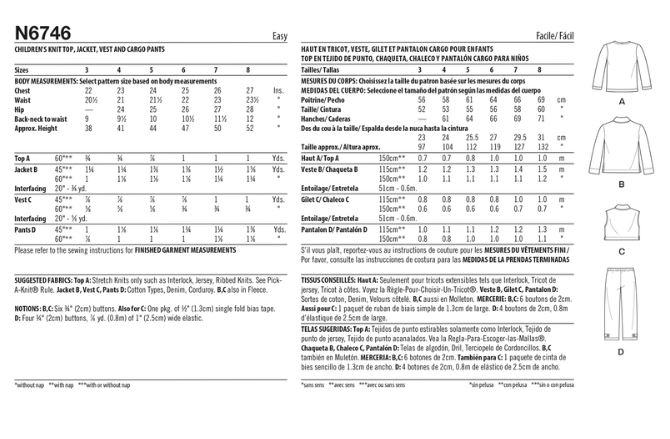 Children's Knit Top, Jacket, Vest and Cargo Pants