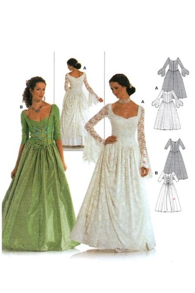 Burda 8198 Medieval Style Fitted and Flared Bridal or Wedding Dress